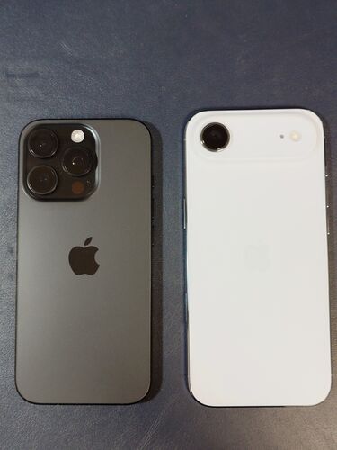 iPhone 16 Pro続投でもいい、と考えたけど、面白いことをやっているiPhone Airを買うことにした。 初見の印象 左: iPhone 16 Pro 右: iPhone Air 箱はiPhone正面ではなく側面からのイメージになっている。ちなみに箱も薄い 薄い、軽い、ディスプレイが大きい…